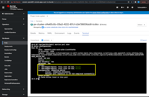 This allows Kubernetes administrators to configure Portworx with automation of LUN creation and attachment for Portworx storage pools available to OpenShift. This also allows administrators to provision only as much storage as they need, as PX-Autopilot will allow them to automatically scale when cluster usage rises.