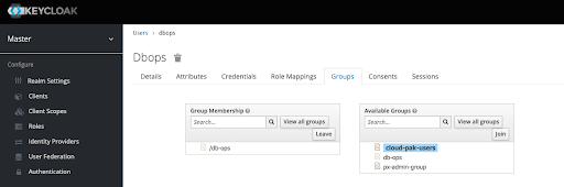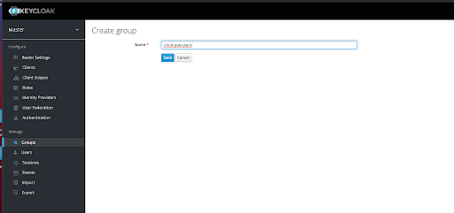 To create groups within PX-Backup, navigate to “Groups” on the left-hand menu of the Keycloak administration console and click “New.” Enter a new group name and click “Save.”