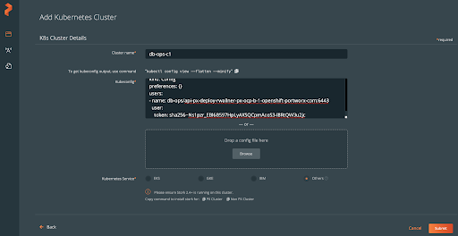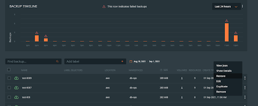 Then the user needs to navigate to “Backups” and then “Add Cluster,” produce his or her specific kubeconfig, and enter it in the “Add Cluster” details along with an arbitrary name.
