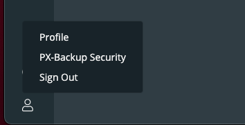Once PX-backup is installed, log in as the Administrator and navigate to the PX-Backup Security menu in the bottom left-hand corner of the PX-Backup user interface.
