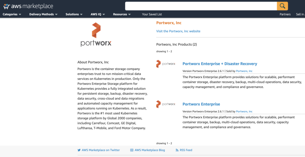 If you are already using Amazon Web Services to run your Kubernetes applications and looking for a starting point to run stateful applications in Kubernetes such as message queues and databases, the Portworx AWS Marketplace offering may be just the ticket. Portworx announced it’s now available in the AWS Marketplace in September 2020 and using the AWS Marketplace allows for a seamless installation and billing experience for Portworx customers running in AWS. Getting started with Portworx is as simple as performing the following steps.
