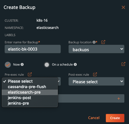 Pre- and post- rules for creating application-consistent Elasticsearch backups