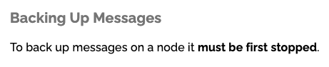 - The second action to temporarily stop RabbitMQ so that we can guarantee a clean snapshot of messages to restore from is