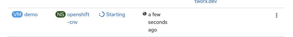 - Name           : virt-launcher-vm1-cg6vf (c9d0a57c-55a2-49cf-891d-4378cab5fa2a) (Pod)