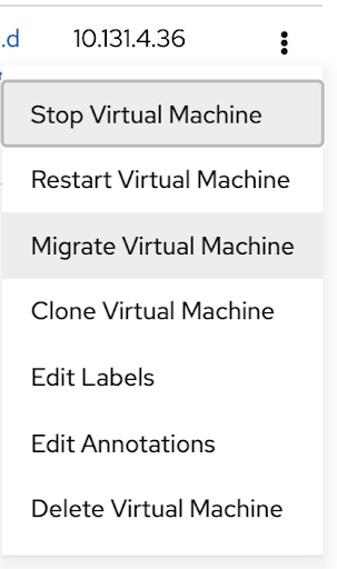 Now, once the VM is running, simply click on the right menu bar and select “Migrate Virtual Machine