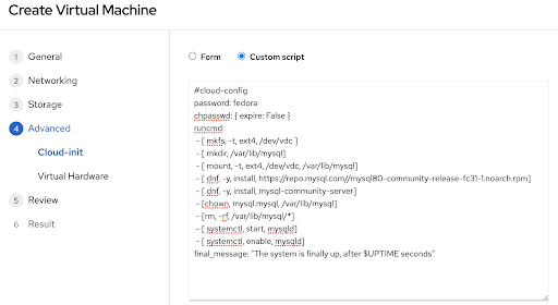 Next, use a cloud-init configuration that will create a filesystem on the Portworx disk and mount it to the /var/lib/mysql directory. Then have cloud-init enable MySQL repositories and install and start MySQL.
