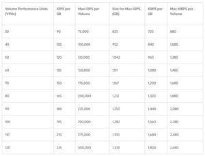 Review the Summary and click Show More if required. Take special notice of the Storage Size and VPUs Count and set them to match application performance requirements. The tables below are provided for reference.