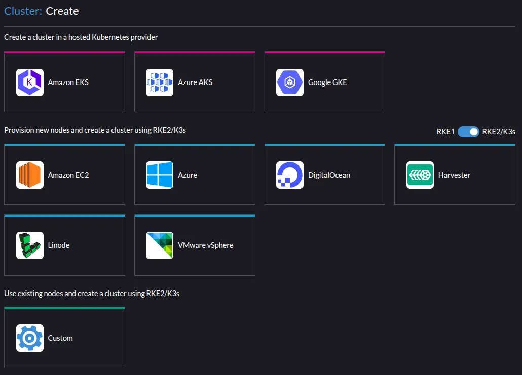 - Multi-Cluster and Multi-Cloud Support – Rancher can manage clusters from one platform across different environments like AWS, Azure, Digital Ocean, vSphere, Linode, and more, including on-prem.